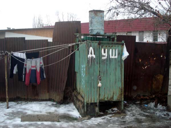 В каждой из двадцати комнат ютится одна семья. В комнатах ни отопления, ни горячей воды. Самые мужественные из слепых могут в зимнее время воспользоваться холодным душем под открытым небом. Говорят, что несколько лет назад была у этого заведения своя котельная. Но после того, как предприимчивые чиновники продали этот участок земли, котельную снесли. Теперь здесь высится фешенебельная гостиница.