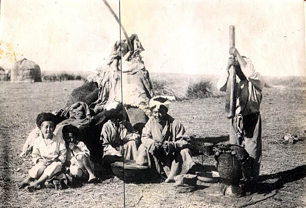 Семья казахов возле юрты