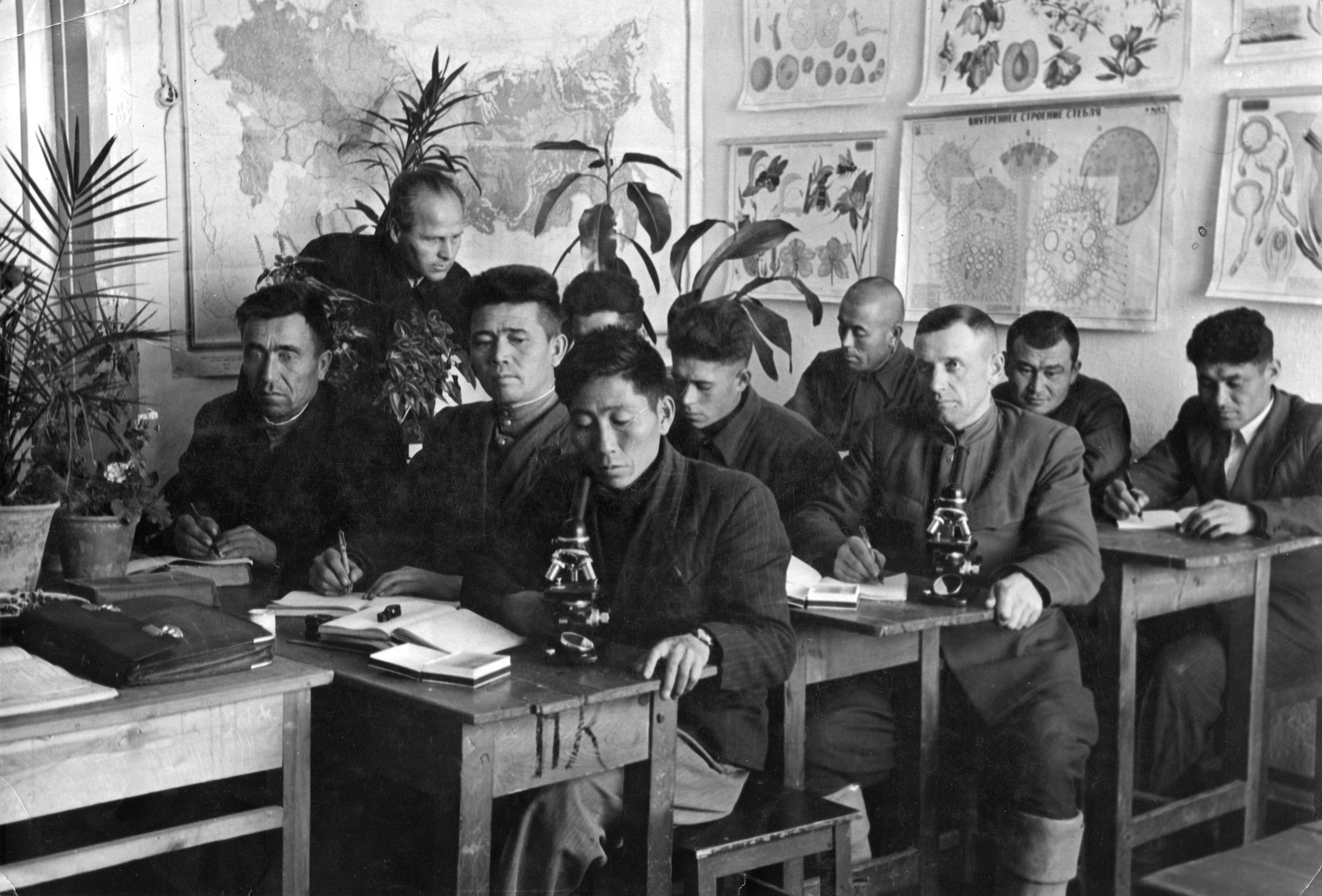 К 90-летию Талгарского сельскохозяйственного техникума. Школа председателей колхозов 1953 г. На занятиях по ботанике.